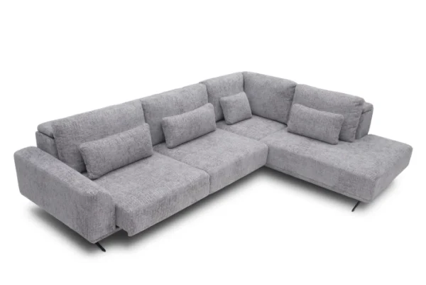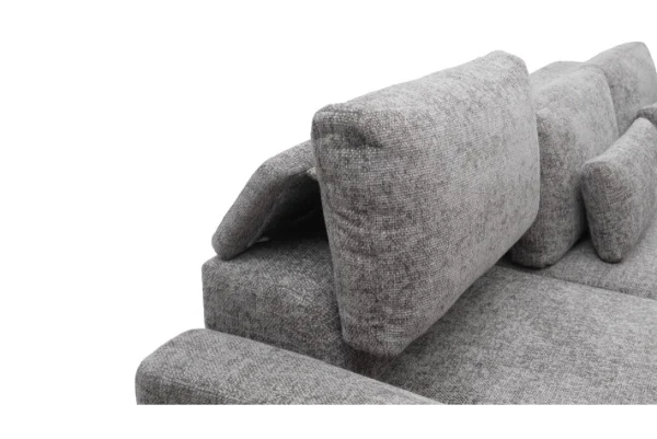 Specijalni podizni nasloni (Prikazano na detaljima): Revolucionarni mehanizam omogućava vam da jastuke naslona jednim glatkim potezom podignete i pozicionirate više i unazad. Time garnitura zadržava svoj niski, moderni profil kada imate goste, a u sekundi se pretvara u duboku oazu s visokom potporom za glavu i vrat kada se želite opustiti.