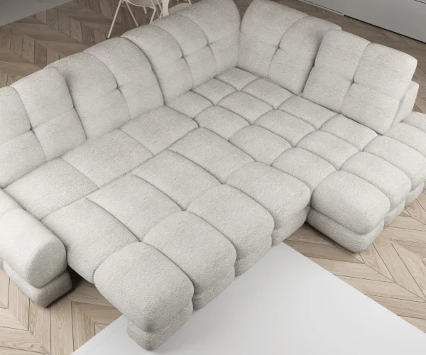 Kao i svi naši premium modeli, Tollo dolazi presvučen u raskošni Cloud velur. Ova tkanina savršeno ističe meke konture garniture, pružajući vrhunsku izdržljivost.